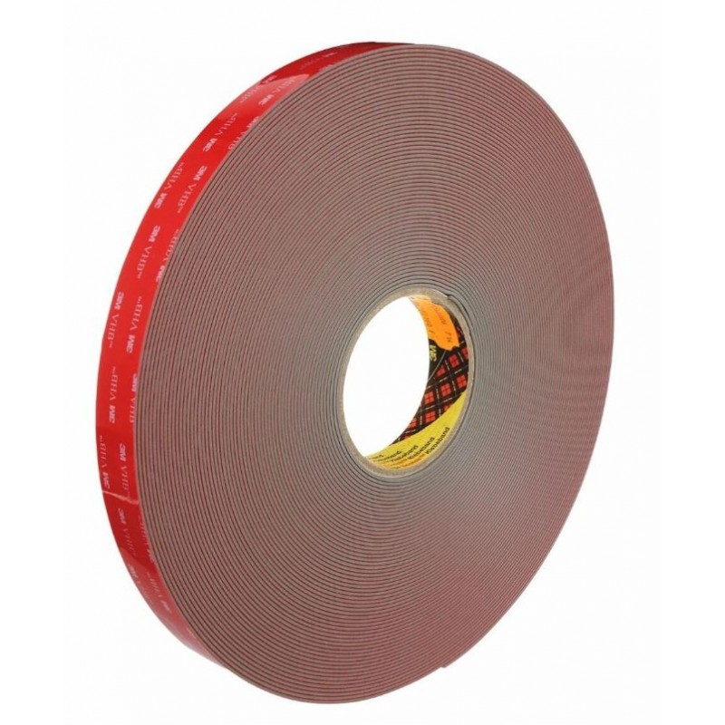 Cinta de Espuma Acrílica gris VHB GPH-160GF 19 mm x 33 m, 1.6 mm de la marca 3M. Adhesivo acrílico multiusos gris de 1,6 mm de espesor con un núcleo de espuma adaptable, que también resiste altas temperaturas. Este método de unión permanente, rápido y fácil de usar, proporciona una buena resistencia y durabilidad. Puede sustituir remaches, puntos de soldadura y tornillos y ofrece flexibilidad en los diseños gracias a su viscoelasticidad. Puede sustituir a fijaciones mecánicas (remaches, puntos de soldadura, tornillos) o adhesivos líquidos, eliminando la necesidad de taladrado, lijado, rectificado, atornillado, soldado y limpieza.