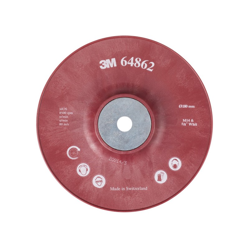 Plato soporte acanalado de alto rendimiento HP estriado, 180 mm, PN64862 de la marca 3M. Se emplea con los discos 3M Cubitron II para mejorar el índice de corte del disco y la vida útil. Resistente a temperaturas superiores a 100 °C. Embalaje 15 unidades. Cantidad mínima de pedido 15 unidades