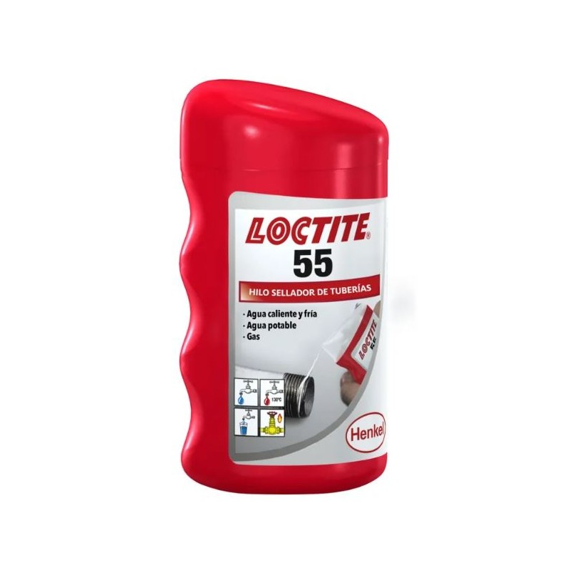 El sellador Loctite 55 en bote de 160 metros es un producto diseñado para fijar y sellar tuberías y conexiones roscadas tanto metálicas como plásticas, ofreciendo un sellado instantáneo sin necesidad de tiempo de curado.