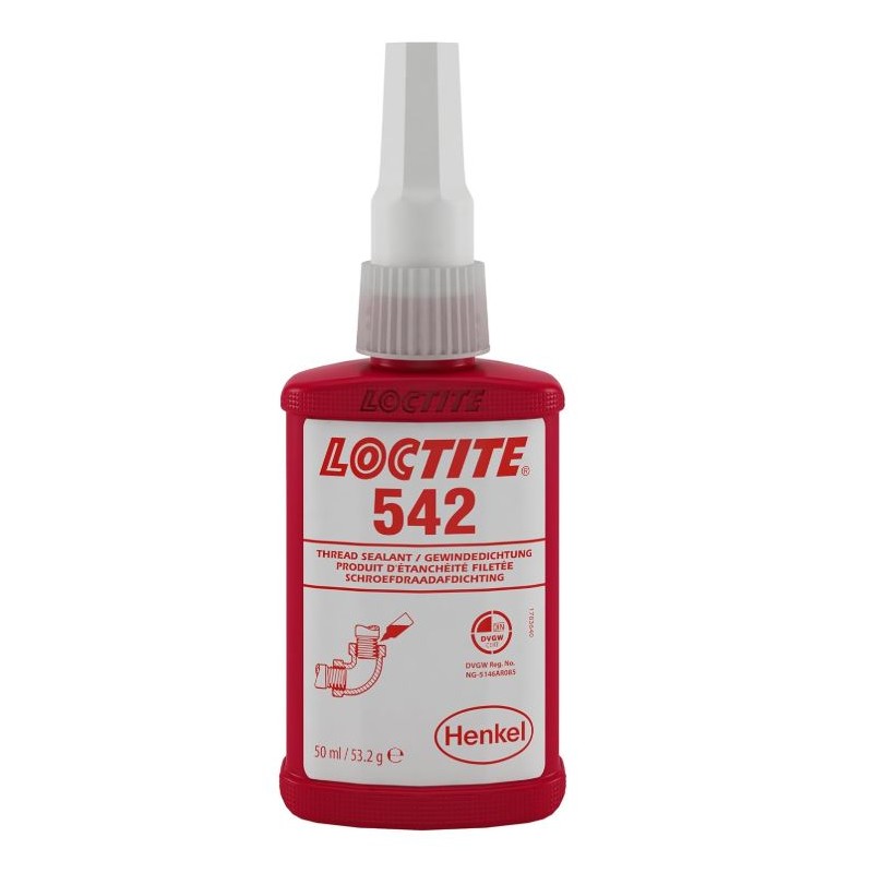El LOCTITE 542 50 ml es un sellador de roscas de resistencia media diseñado específicamente para fijar y sellar tuberías y conexiones metálicas roscadas, así como otros montajes cilíndricos de metal. Está recomendado para roscas de paso fino, comúnmente utilizadas en aplicaciones de hidráulica, neumática y racorería en general. El producto cura en ausencia de aire, rellenando completamente las holguras entre los filetes de rosca para prevenir el aflojamiento y las fugas causadas por impactos y vibraciones. Su naturaleza tixotrópica reduce la migración del producto líquido tras su aplicación. Es adecuado solo para roscas metálicas y ofrece resistencia a carburantes, aceites, líquidos refrigerantes e hidráulicos.