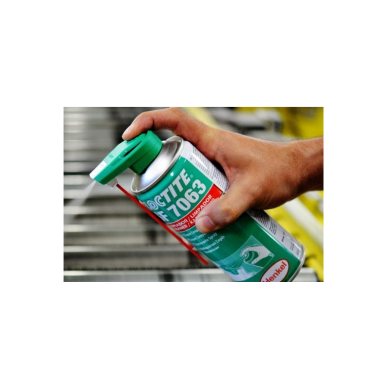 El LOCTITE SF 7063 400 ml es un limpiador de uso general en base solvente, diseñado para la limpieza y desengrase de cualquier tipo de superficie o maquinaria antes de realizar reparaciones o montajes con adhesivos LOCTITE.