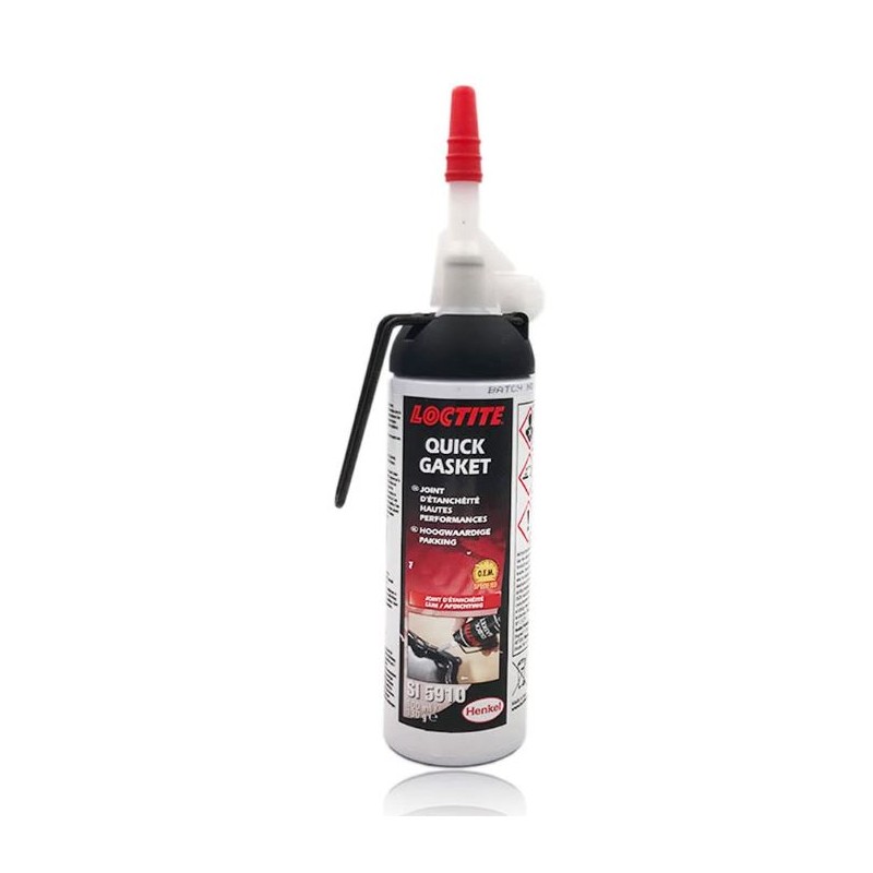 El sellador Loctite 5910 Quick Gasket es un producto de silicona negro diseñado para proporcionar una junta de estanqueidad de alta calidad, especialmente en aplicaciones donde hay contacto permanente con aceite. Este sellador es adecuado para una amplia variedad de materiales, incluyendo metal, plástico y piezas pintadas, y se utiliza comúnmente en componentes como el cárter interior, la tapa de la culata, el tubo de aspiración, el tappo de la cadena de distribución y el cárter de diferencial. El producto tiene una excelente resistencia a los aceites y a los movimientos articulares, lo que lo hace ideal para juntas flexibles, ya sea en superficies mecanizadas o fundidas. Su formulación de silicona thixotrópica reduce la migración del producto líquido después de la aplicación, ayudando a mantener la integridad del sellado. El tiempo de tacto seco es de aproximadamente 40 minutos, y el sellado completo se logra en un plazo de 24 horas.
