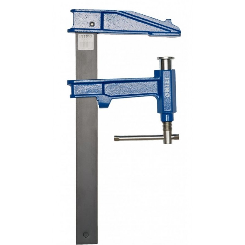Mordazas de pistón de industria pesada Longitud: de 300 a 1200 mm. Capacidad de 150 mm. Material de acero de muelles utilizado en las guías. Mordazas de fundición resistentes. Mango en T de acero. La doble rosca totalmente protegida multiplica la capacidad de avance y de presión. Mecanismo de freno anti-deslizante. Disco superior fijo y disco inferior oscilante. Embalaje industrial.