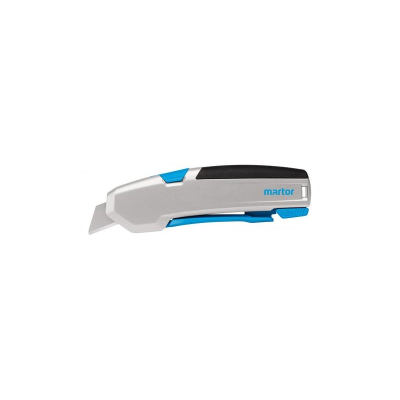 Cutter Secupro 625 de la marca Martor Cutters. Hoja trapezoidale redondeada, 21 mm profundidad de corte, Cuchillo de seguridad prémium de aluminio para las aplicaciones más exigentes. Palanca ergonómica para liberar la hoja. Retracción completamente automática de la hoja.