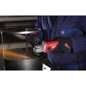 Amoladora angular AG 10-125 EK de la marca Milwaukee. Potente motor de 1000W para todo tipo de aplicaciones. Diseño extremadamente compacto con una longitud de 276mm y 2.1Kg para un manejo más cómodo. Función de relé de baja tensión que previene automáticamente el arranque accidental tras una caída de tensión. Arranque suave para comienzo preciso. Protector de seguridad de liberación rápida y sin herramientas. Interruptor deslizante que facilita la puesta en marcha, incluso con guantes. Cable de 4m.