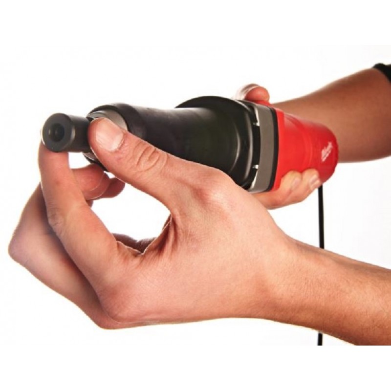 Amoladora recta DGL 30 E de la marca Milwaukee. Amoladora de cuello largo para un fácil acceso a zonas difíciles. Arranque suave electrónico. Control de velocidad electrónico. Alta velocidad en vacío 30.000rpm. Caja de engranajes para una alta rotación precisa gracias a sus 2 cojinetes en el eje. Escobillas autodesconectantes. Suministrado con llave SW 17 / SW 15, pinza de 6mm y cable de 4m. Esmeriladora recta de velocidad variable. Eje alargado par llegar a lugares de dificil acceso. Caja de engranajes metálica de precisión con doble asiento de los rodamientos del eje. # Peso : 1.9 kg. QUIK - LOK para un cambio rápido del cable dañado. Potencia absorbida : 600 watios. Diámetro de pinza : 6 mm. Velocidad en vacio : 10.000 a 30.000 rpm. Diámetro máximo muela abrasiva ( at 80 met / sec : 40 mm. Diametro máximopunta esmerilar ( at 45 m/sec ) : 20 mm. Designación : 4933 - 385120