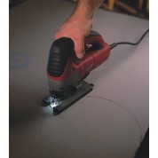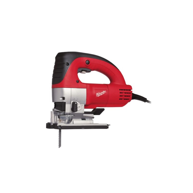 Sierra de calar con empuñadura cerrada JSPE 135 TX de la marca Milwaukee. Sierra de calar con empuñadura cerrada robusta y potente para cortes rápidos en madera, aluminio, hierro o cerámica. Potente motor de 750W. Guía de corte de precisión para cortes perfectos. Sistema FIXTEC™ para cambiar las seguetas en segundos. Electrónica con velocidad variable, arranque suave y velocidad constante bajo carga. Ajuste en 4 etapas de la acción pendular para un mejor rendimiento y mayor vida útil de las seguetas. Dispositivo de soplado de la viruta en la parte delantera y trasera. Luz LED para iluminar el área de corte. Suministrado con 5 seguetas, dispositivo anti-astillas, patín deslizante, caperuza para polvo y 4m de cable. Robusta y potente sierra de calar para cortes rápidos en madera, aluminio, acero o cerámica. Excelente relacción potencia / peso 750 watios de potencia y solo 2,5 kg. Led-lux de guia para una mejor bisibiidad de la linea de corte, bajas vobraciones gracias a la tecnología antivibración y el Sofgrip. Eficiente dispositivo de soplado de viruta y adaptador integrado para extracción de polvo. Profundidad de corte : madera/aluminio/acero : 135/30/10mm. Cortes sesgados hasta : 45º Número de carreras en vacio : 800 - 3000 cpm. Carrera : 26 mm. Peso : 2,5 kg. Designación : 4933 - 381230. Equipo estándar compuesto por : cable Quik-Lok 4 m, 5 seguetas, dispositivo anti-astilla, patin deslizante, Caperuza para polvo, maletin de transporte, adaptador de absorción.
