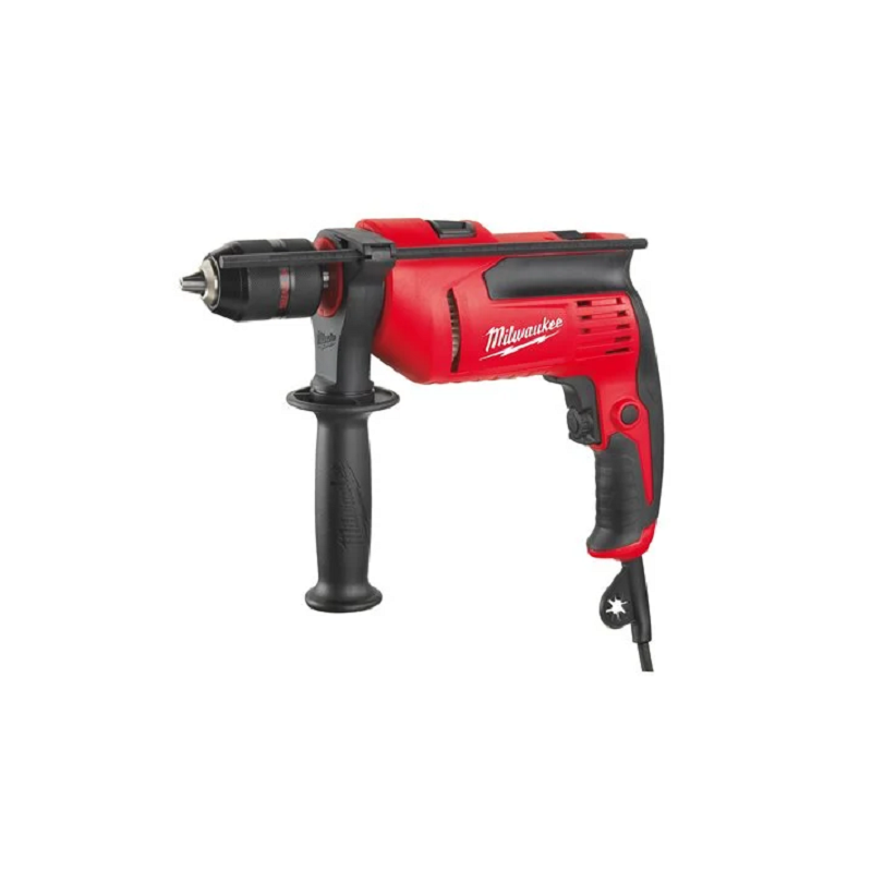 Taladro percutor PD-705 de la marca Milwaukee. Potente y compacto motor de 705W. Diseño compacto y ergonómico con grandes zonas engomadas para ofrecer un excelente manejo. Control de velocidad variable con acción de reversibilidad. Parada de percusión para funciones de perforación en madera o metal. Portabrocas automático metálico de 13mm. Cuello de 43mm de diámetro para poderlo usar en soportes de taladro. Cable de 4m.