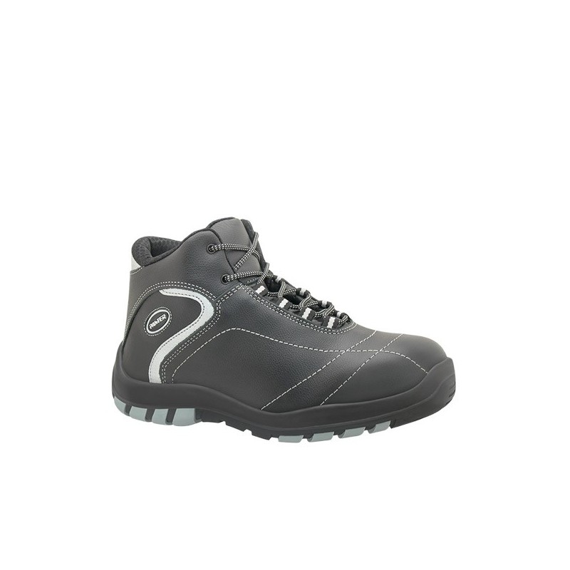 Bota Monza negro S3 de la marca Panter. Bota de seguridad con cordones, de máximo confort y bienestar, desarrollada con Materiales Premium de 1ª calidad. Atractiva estética y diseño de vanguardia, apto para dentro y fuera del trabajo. • Piel natural 1ª flor hidrófuga • Puntera plástica antimpactos 200J • Plantilla antiperforación textil 1100N • Suela PU/TPU máximo coeficiente antideslizante 0,48 • Tecnología Optimal Sole que aporta ligereza, estabilidad y confort
