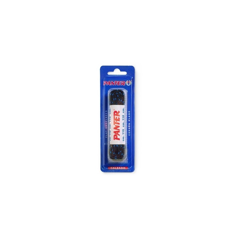 cordón plano profesional laboral 1,10 m de la marca Panter. Cordones negros para zapatos y botas de 110 cm. Fabricados con fibras de poliéster flexibles y muy duraderos.
