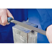 Lima de taller plana paralela PF 1122 250 H2 de la marca PFERD. Lima rectangular con corte en tres caras, una cara sin picar. Ejecución con espiga. Forma A según DIN 7261. Lima de taller plana paralela 100 mm corte 2 uso universal para desbaste y afinado