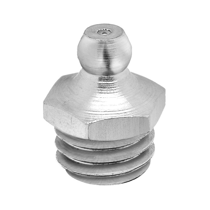 Engrasador hidráulico MT-503, recto, rosca SAE (UNF), 3/18" (x 24). Engrasadores hidráulicos rectos con válvula de retención anticontaminación. El alojamiento de la cabeza del engrasador debe permitir un ángulo de ataque inferior a 20° para la correcta conexión de la boquilla hidráulica de engrase. De aplicación general en vehículos industriales, maquinaria industrial, agrícola, naval, aeronáutica, de construcción, de generación de energía, etc. Realizados en acero zincado, endurecido o inoxidable según modelo. Máxima presión de trabajo 550 bar.