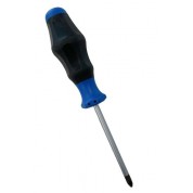 Destornillador mango bicomponente con protección antigiro. Niquelado mate, punta negra.