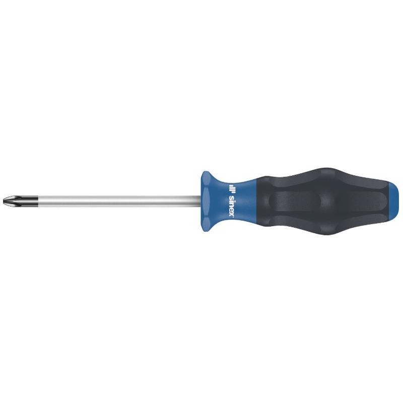 Destornillador mango bicomponente con protección antigiro. Niquelado mate, punta negra.