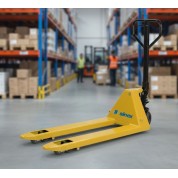Transpaleta PU 2.500 kg de la marca SINEX. Cuenta con las siguientes caracterícticas: • Transpaleta de alta calidad. • Pintado con recubrimiento en polvo. • Carga máxima: 2.500 kg. • Rango de elevación: 85-200 mm. • Longitud de la horquilla: 1.150 mm. • Ancho de la horquilla: 150 mm. • Distancia entre horquillas: 540 mm. • Ruedas de dirección de PU: 180 x 50 mm. • Rueda de carga de poliuretano en tándem: 80 x 70 mm. • Material: Acero.