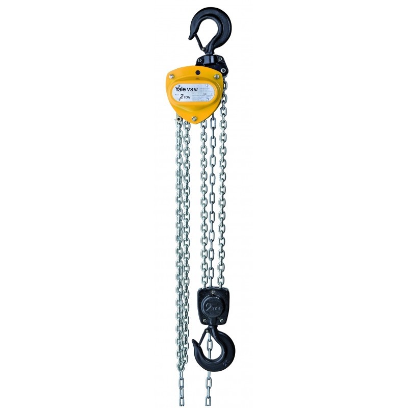 Polipasto manual de cadena VSIII 0,5/1 de la marca Yale. Capacidad de 500 Kg. 1 ramal con altura de elevación máxima de 3m. Cadena de 5 x 15 mm. Los rodamientos de alta calidad en los laterales, la tapa del engranaje y la nuez de cadena garantizan el perfecto funcionamiento de la nuez y del piñón.
